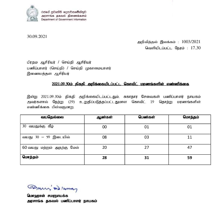 உயிரிழந்தவர்களில் 28 ஆண்களும், 31 பெண்களும் அடங்குவதாக அரசாங்க தகவல் திணைக்களம் தெரிவித்துள்ளது.
